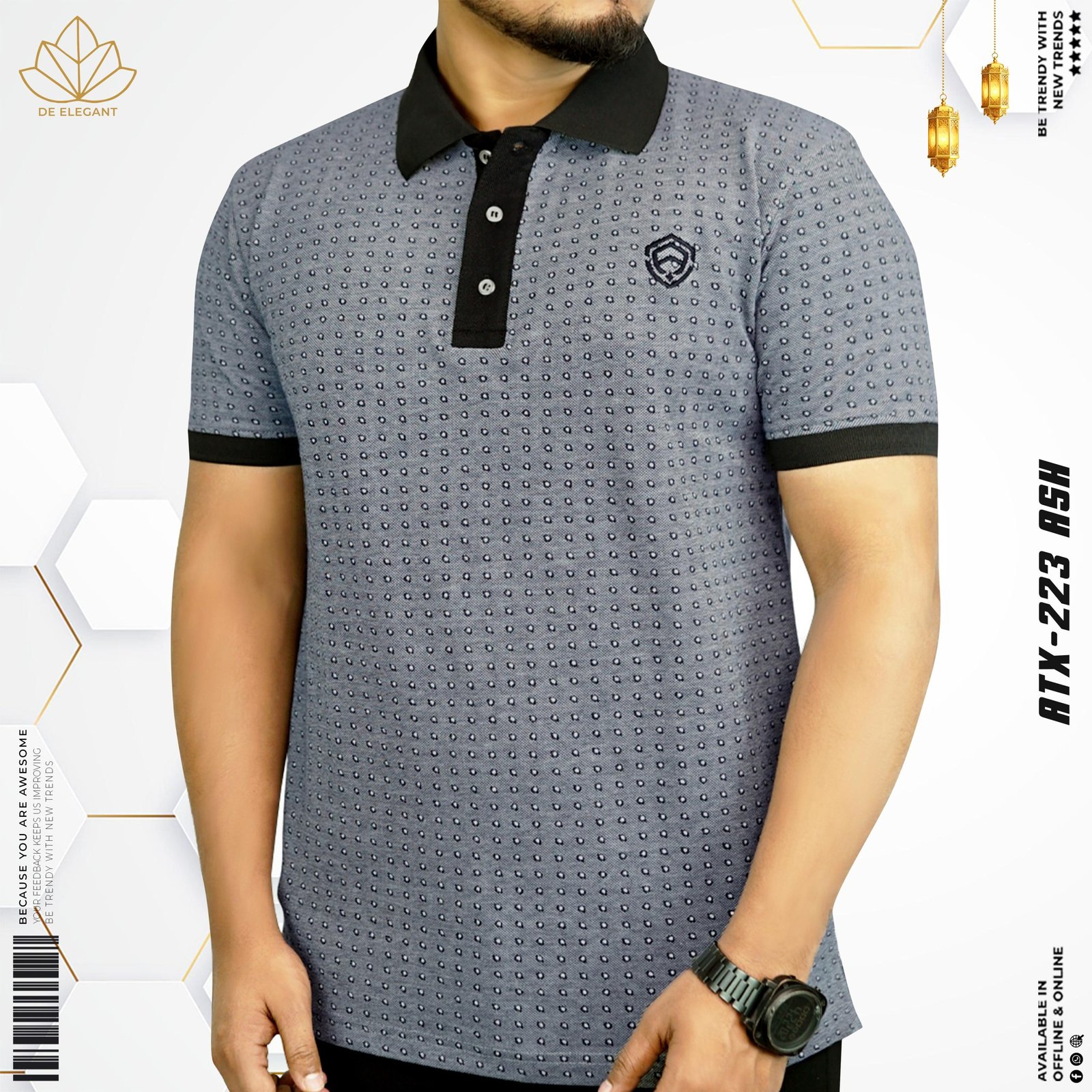 Eid Special Export Quality Premium Printed Polo Shirt: ATX 223 (Ash)