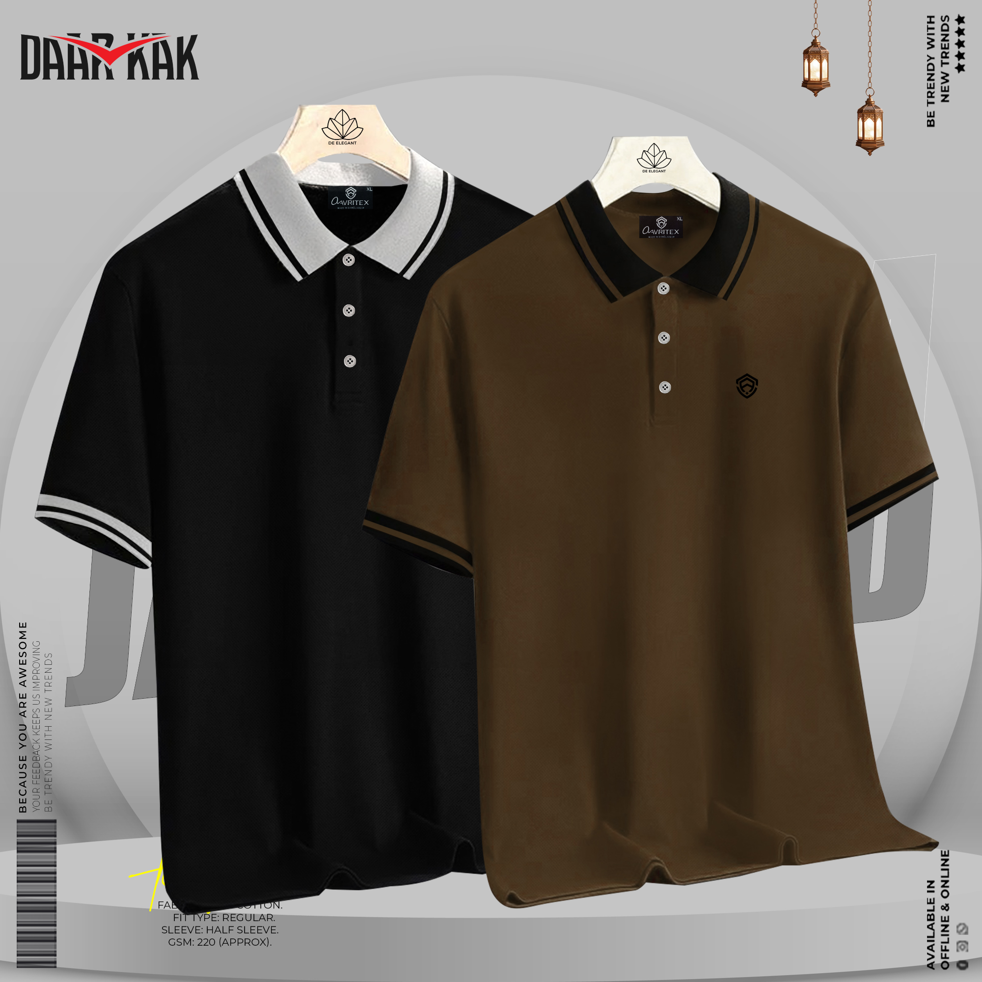 Premium Basic Polo Shirt Black & Coffee Color